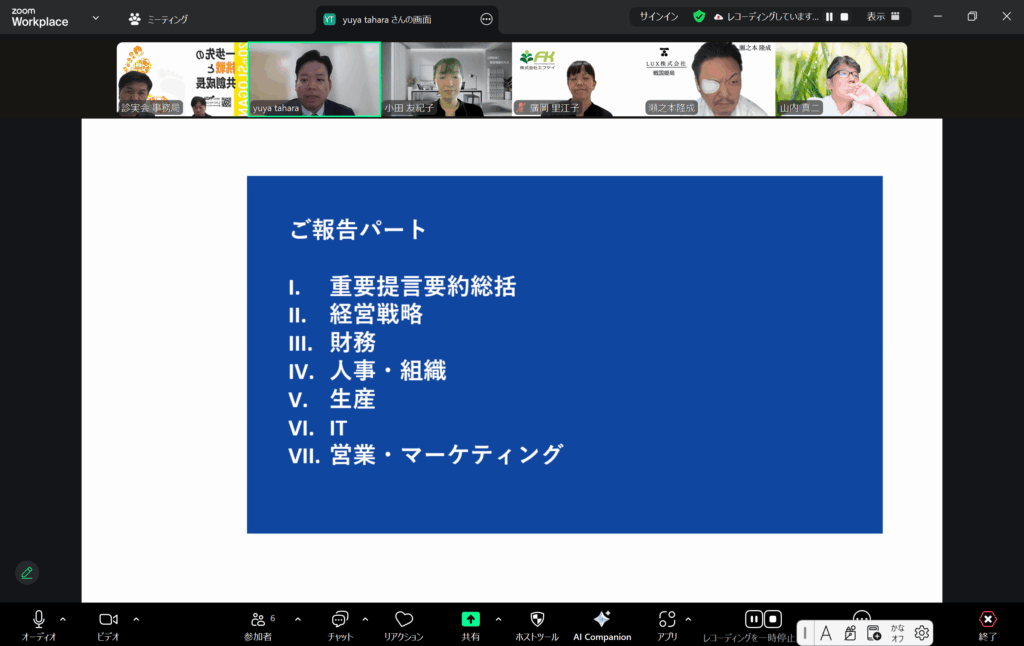 診断は、診断実践協会として2件目となる完全オンライン対応で実施され、経営者へのヒアリングを通じて、事業環境と経営課題を把握しました。
