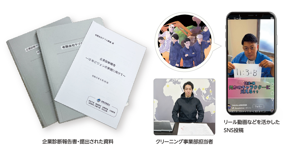販路拡大やマーケティング、 営業力強化についてのご相談を 受け、 企業診断を実施しました。 診断の結果、 特にクリーニン グ事業(布団洗濯の新事業)を成長させることが今後の重要 なポイントであると捉え、 資金調達や市場調査、SNS活用な ど、10年後のビジョンを見据え具体的な提案を行いました。