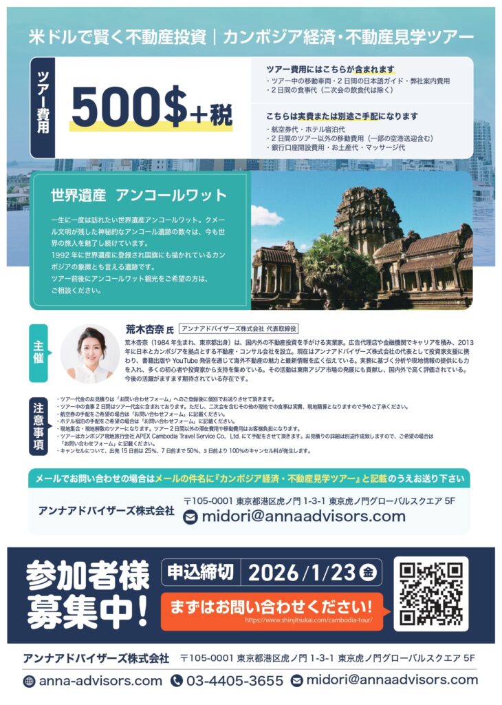 現地カンボジアへ、荒木 杏奈氏と行く!「経済・不動産見学ツアー(2026)」