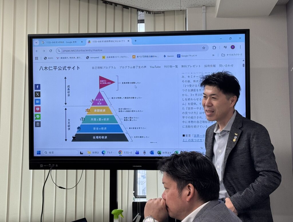 施策は4Pで現状整理し、特にプロモーションは取材・露出を受け身で終わらせず、意図的に企画・キャンペーンへ展開する視点を共有しました。欲求段階に応じた価値設計を踏まえ、中長期のファン化も議論しました。