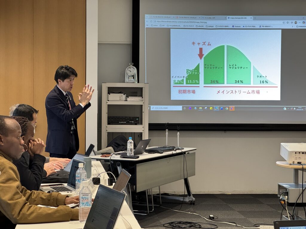 STPを通じて狙いを定め、4P(製品・価格・流通・販促)へ落とし込むプロセスを整理しました。あわせて、SNSやWebを活用した顧客との関係性づくり、キャズム理論を踏まえた普及戦略についても触れました。
